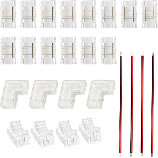 2Pin Transparent Solderless 8mm COB LED Strip Connector Corner Kit,Strip To Wire 4P,Strip To Strip 12P,L-Shape 2P,Red and Black Wire 4P,for 5V 12V