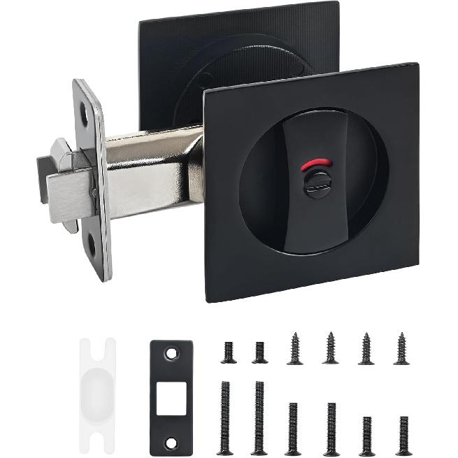 Square Pocket Door Lock with Color Coded Indicator, Pocket Door Hardware,Pocket Door Latch, Matte Black Privacy Pocket Door Hardware for Home,
