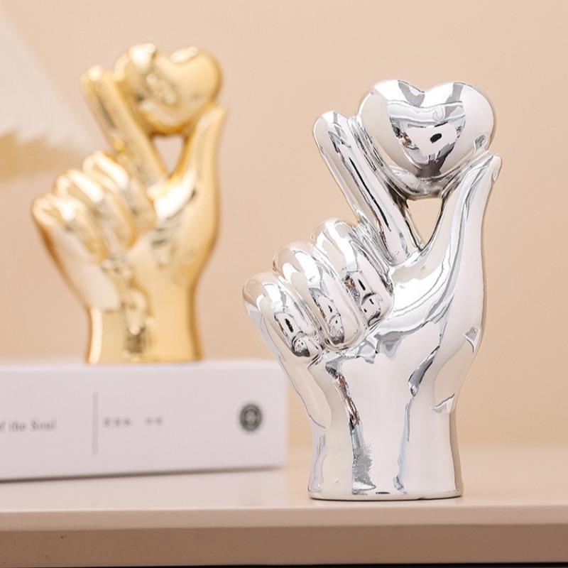1pcs Valentine's Day Heart Gesture Ornament Minimalist Home Desktop Decor Ceramic Craft for Holiday Gift
