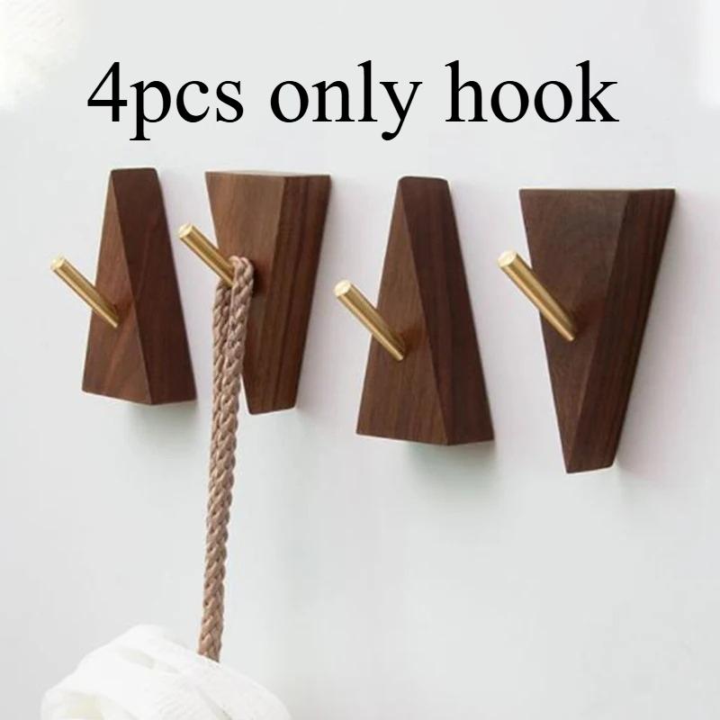 4pcs Japanese Creative Hooks Coat Hooks Wall Decoration Hooks Wooden Hooks No Punching Multifunctional Hooks