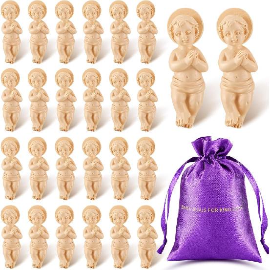 Suzile 12 Pieces Baby Jesus 1.5'' King Cake Figure with Gift Bag Resin Mini Jesus Figurines Bulk for Mardi Gras Party King Cake Toppers Decorations