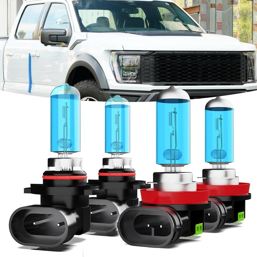Headlights Fit for 2015-2020 Ford F150 Halogen Headlight Bulbs,9005/HB3/H10 High Beam & H11/H8/H9 Low Beam Headlight Bulbs,Plug And Play,Pack of 4