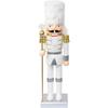 FUNPENY 14" Christmas Decorative Nutcracker Figures, Handmade Wooden Soldier In White Uniform Hold Scepter, Festive Collectible Nutcracker Gift for
