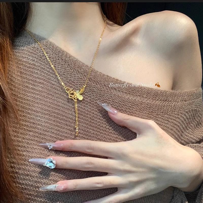 Natal Year Spirit Snake Wrapped Butterfly Pendant Necklace Female Cold Wind Collarbone Chain Accessories