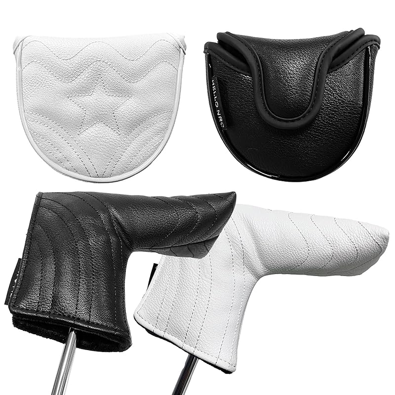 Golf Headcover, Pin Type, Putter/Mallet Cover, Single Headcover, Wave Pattern, Black/White, Waterproof, Premium PU Leather (Black, Semi-Circular)