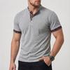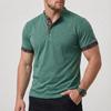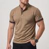 Men's Casual and Fashionable Color-blocked Checkered Shirt, Men's Short-sleeved Stand-up Collar Fitted Top