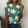 Summer Simple Fresh Style Flower Patter Women Fashionable Comfortable Loose Large Size T-shirt