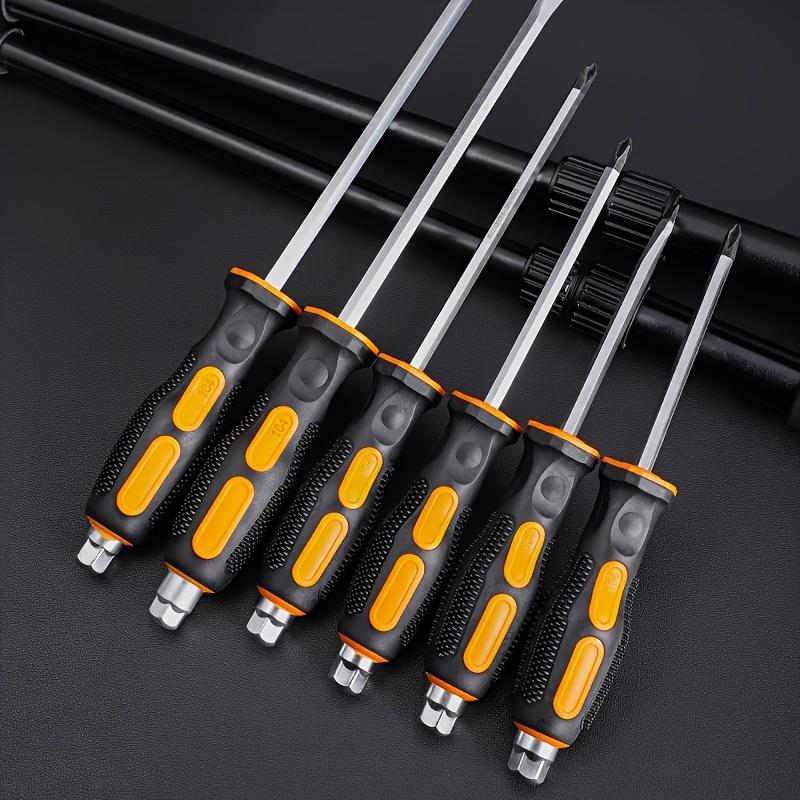 6/8-Inch Non Slip Hammer Type Magnetic Screwdriver Tool Set with Soft Handle Flat Head Screwdriver, Suitable for Home Repair