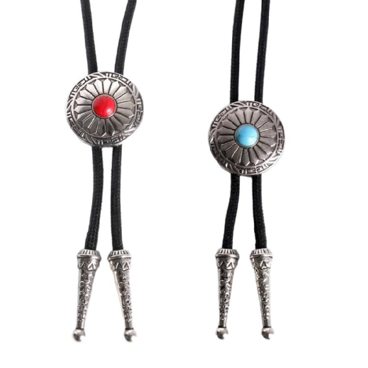Bolo Tie for Women Men Western Bolo Tie Vintage Metal Sunflower Stone Pendant Faux Leather Rope Necktie Tie Necklace