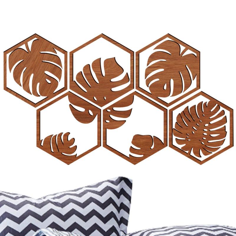 Palm Leaf Wall Art Wooden Board Leaf Splicing Wall Sticker Creative Hexagonal Wooden Wall Decoration Wall Art For Bedroom