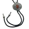 Elegant Black Bolo Tie with Gemstones Pendant Cowboy Necktie Western Tie