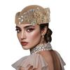 Vintage Fascinator Beret Hat Wool Derby Flower Patched Hats for Cocktail Party Flower Bowler Hat 1920s Lady Church Hat