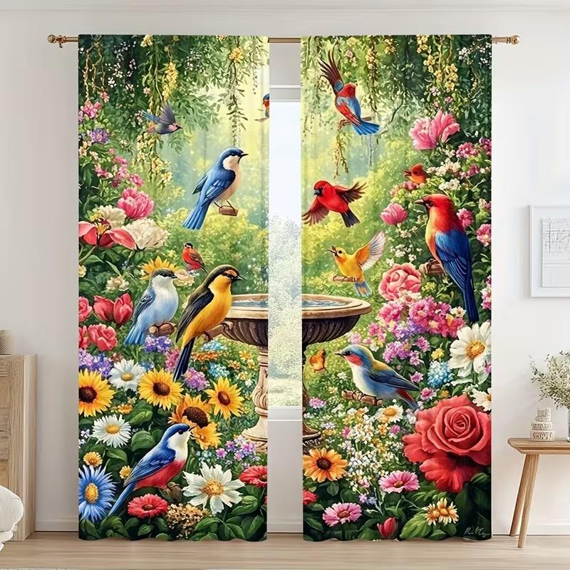 2 Pcs Spring Birds and Flowers Print Curtains,suitable for Bedroom,living Room Kitchen Decoration,home Decoration,window Decor