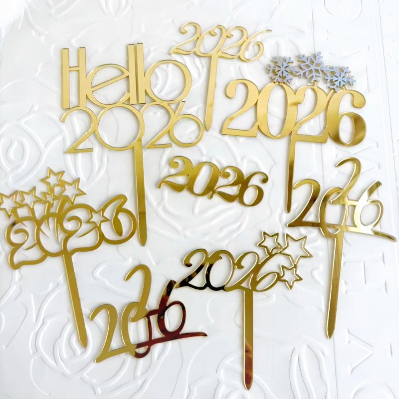 1pc Gold 2026 New Year Cake Topper Xmas Cupcake Topper Christmas New Year Party Cake Decorations
