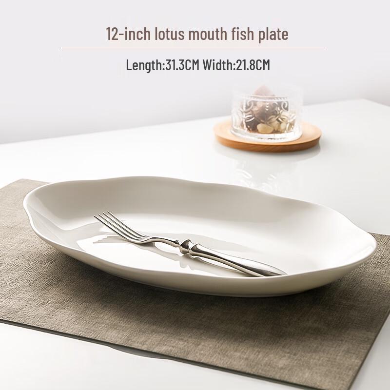 Qianxing Pure White Ceramic Fish Serving Plates