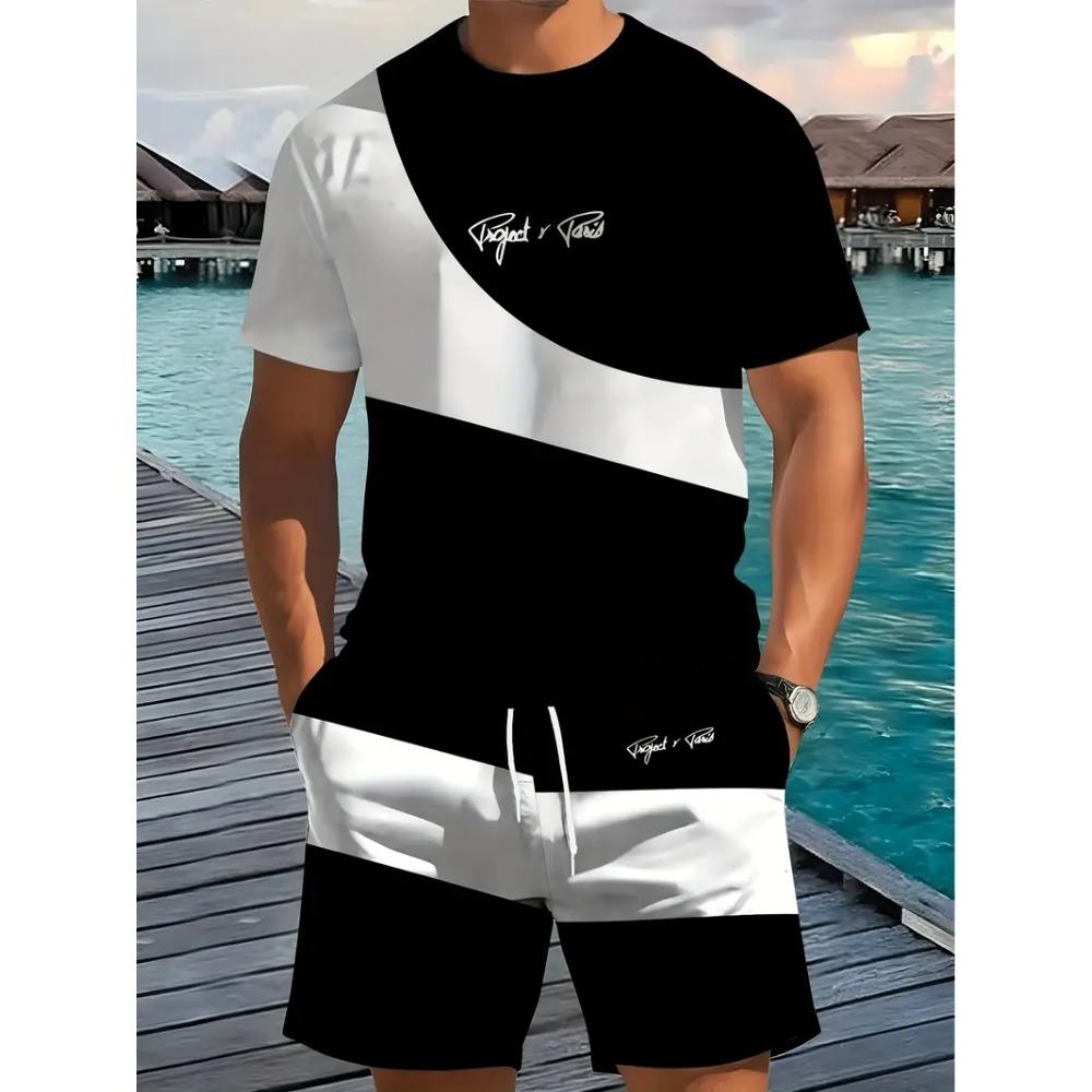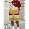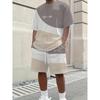 Summer Men's Short Sleeved Shorts 2-piece Set with Plus Size Stitching Color T-shirt Shorts, Clothing Pocket Elastic Waist Shorts