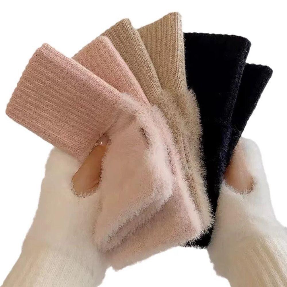Fleece Half Finger Gloves Solid Colors Wrist Mittens Luxury Winter Warm Autumn Winter