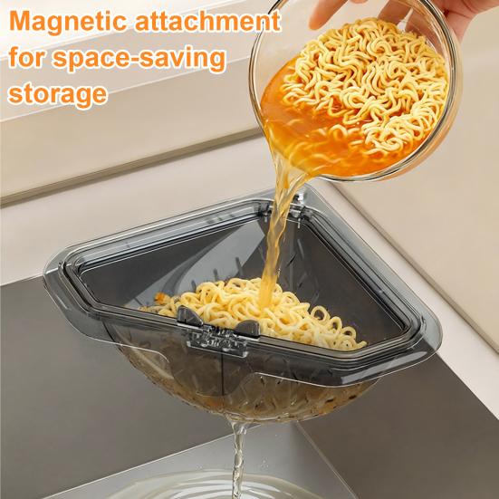 Featuring an innovative magnetic design, this sink strainer securely attaches to corners, effectively collecting fruit peels, vegetable scraps, and cooking waste. Lightweight and portable, it's easy to install or remove without tools, making meal prep cleanup simple and helping maintain a clean, hygienic kitchen sink while reducing plumbing blockages.