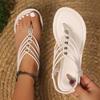 Women'S Bohemian Style Adjustable Ankle Strap Flat Sandals - Open Toe with Beaded Cross Straps, Summer Beach Party Shoes