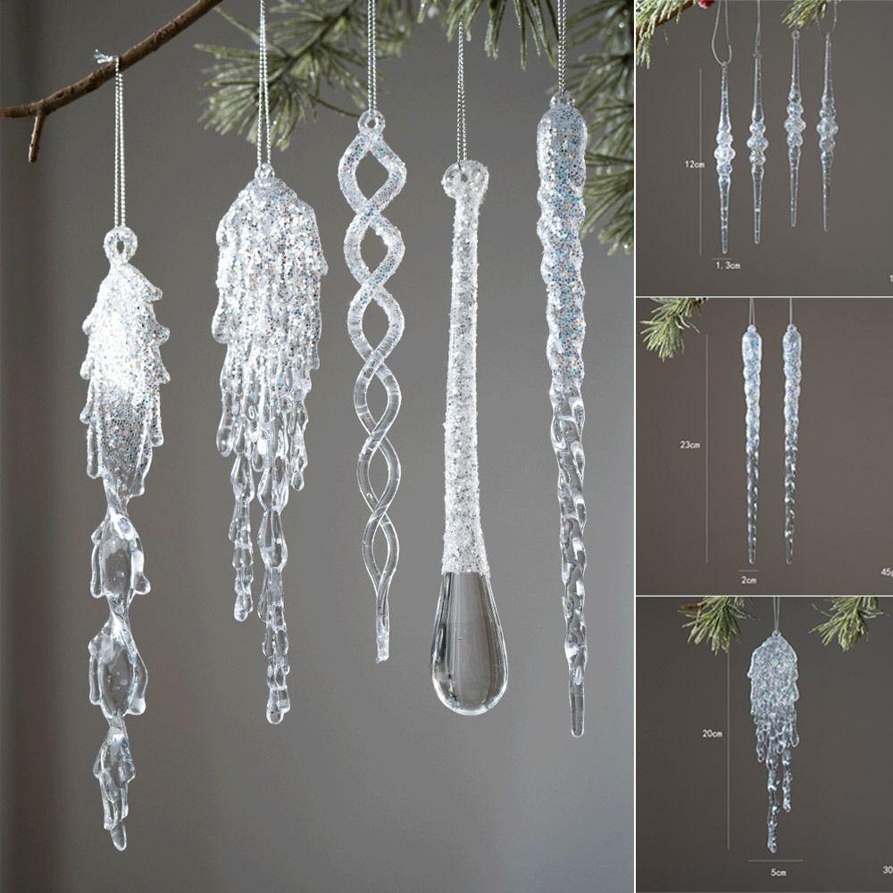 Crystal Clear Icicle Decorations Acrylic Party Holiday Decor Christmas Tree Ornaments