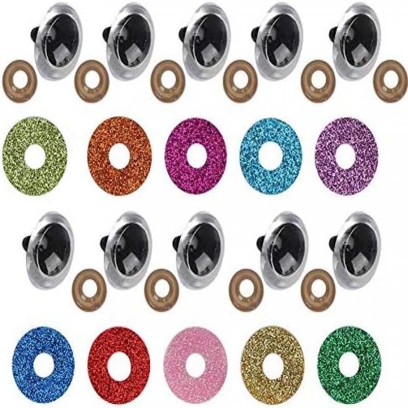 100Set Safety Eyes Doll Eyes 24mm Plastic Glitter Eyes with Colorful Washers for Plush Toys Teddy Bear Crafts