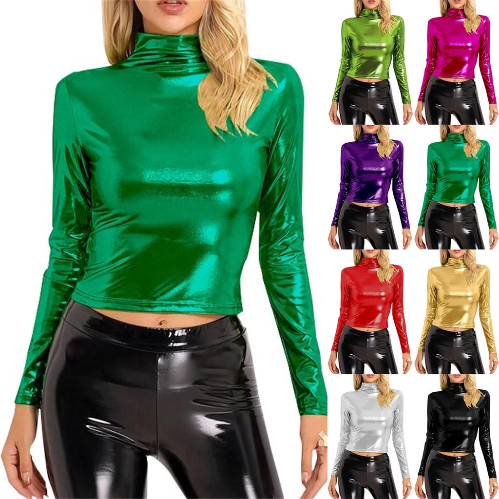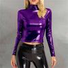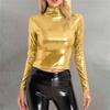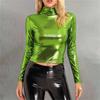 Women's Fashionable Color High Neck Long Sleeved Exposed Navel Sexy Tight Fitting Performance Outfit Top
