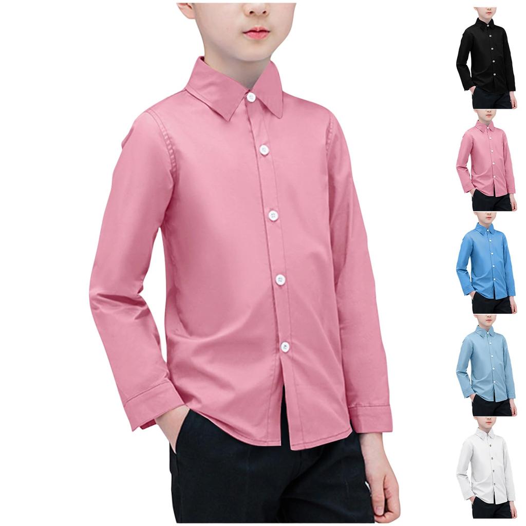 Boys Cotton Regular Fit Tops Shirts Button Down With Cuffs & Shirttail Hem Long Sleeve