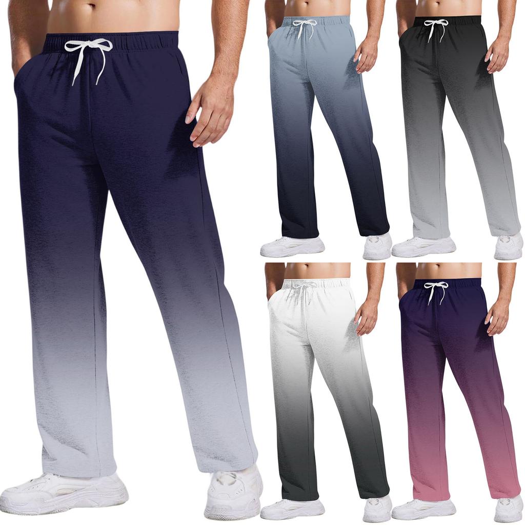 Men's Tie, Gradient Casual Pants With Pockets | Loose Straight Leg, Elastic Waist With Drawstring For Daily & Casual Wear