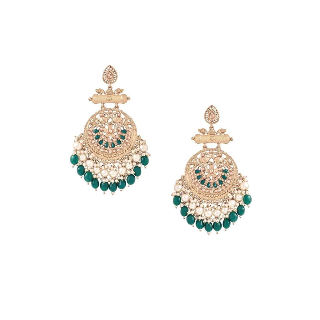 Ethnic Gold Plated Enamel Handpainted Design Stones Beads Traditional Chandbali Earrings for Women and Girls