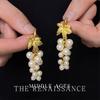French Retro Court Style Handmade Glass Pearl Fringed Earrings Gentle Temperament Grape Leaf Design Earrings