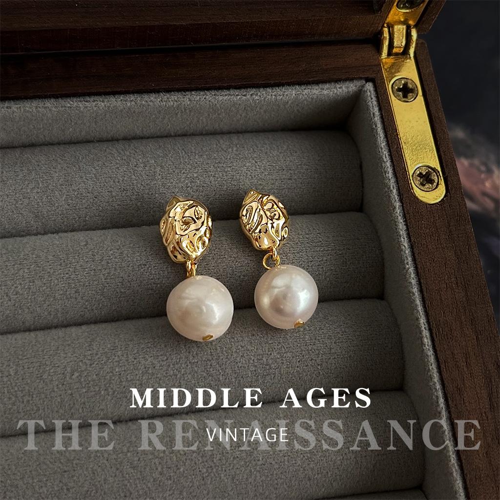 Liquid Geometric Freshwater Pearl Earrings French Light Luxury Temperament Earrings Women