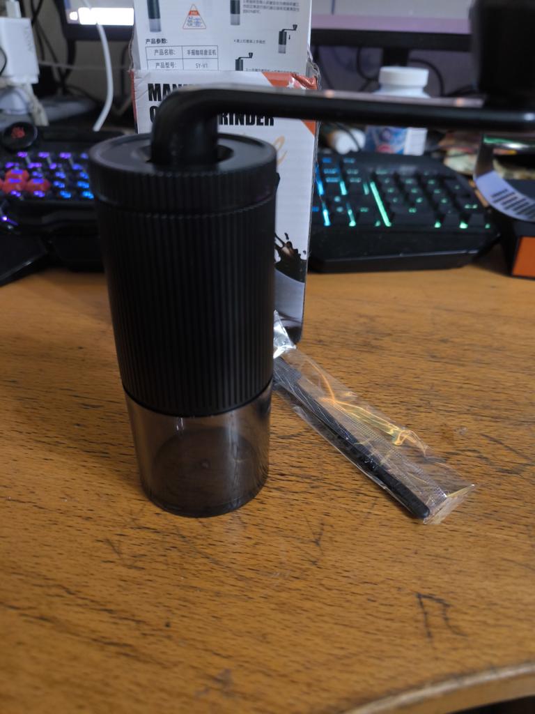 Excellent small coffee grinder, bought it to grind dry garlic. There's even a small brush for cleaning the mechanism.