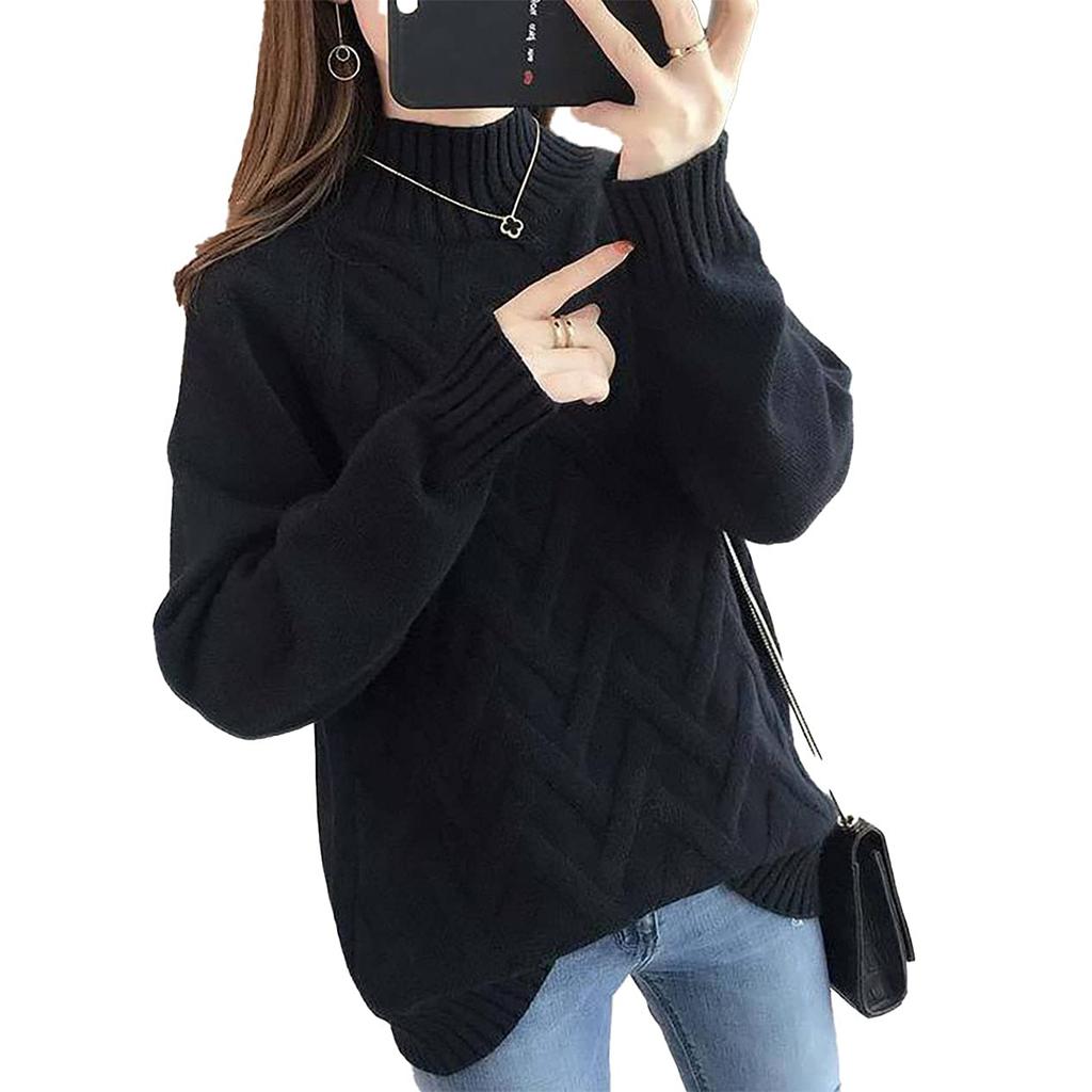Big Laugh Knit Long High Solid Low Spring Women's Sweater, Sleeve, Neck, Knitted, Color, Simple, Gauge, Fall, Winter, (Black, French)