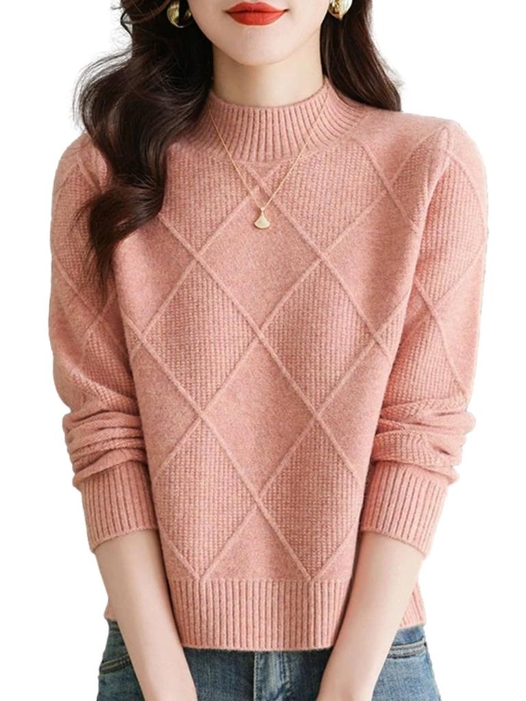 BN1 Select Knit Sweater Machine No Ironing Long High Perfect for and Spring Women's (Wool-Touch, Washable, Required) - Pink, Sleeve, Neck, Fall,