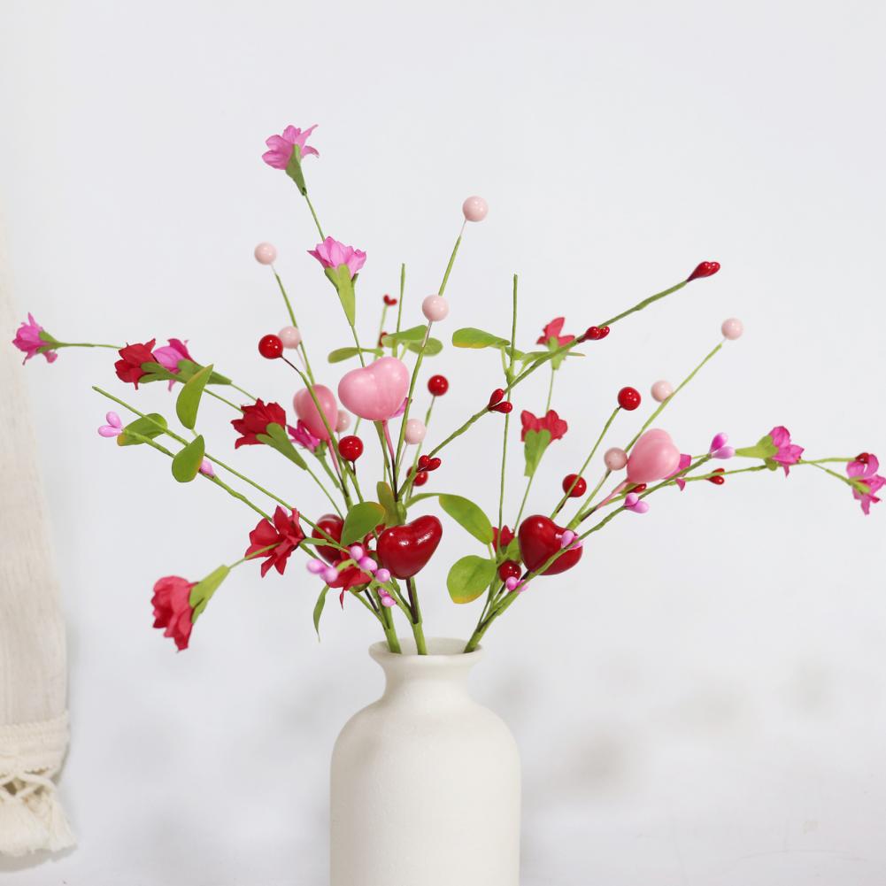Valentine's Day Artificial Berry Stems Pink Red Heart Shaped Berry Picks for Valentine's Day Wedding Party Anniversary Table Home Decor