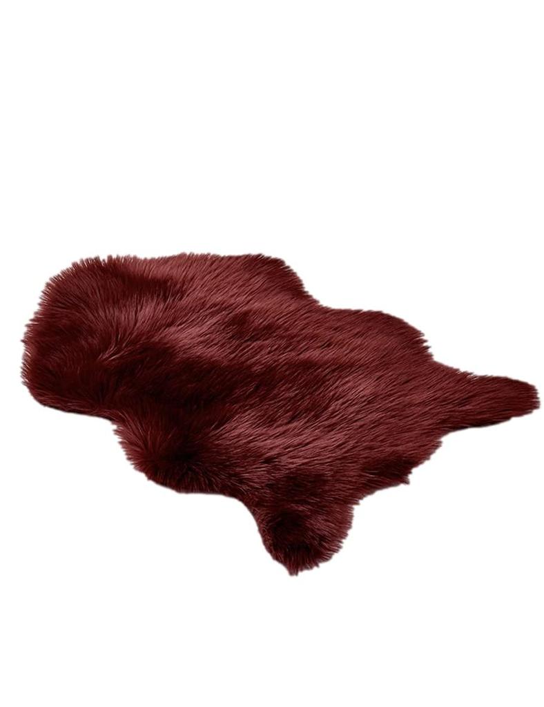 Soft and Fluffy Faux Sheepskin Rug for Living Rooms, Bedrooms, and Camping (Wine Red, 40x60cm)