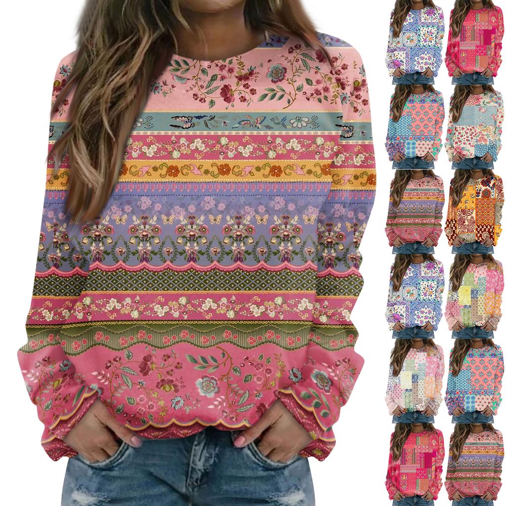 Women's Fashion Casual Long Sleeve Christmas Printed Neck Sweatshirt Top