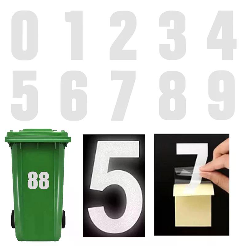 Reflective Trash Can Labels Wheelie Bin Number Sticker Self-Adhesive Weatherproof Outdoor Mailbox House Numbers Decal