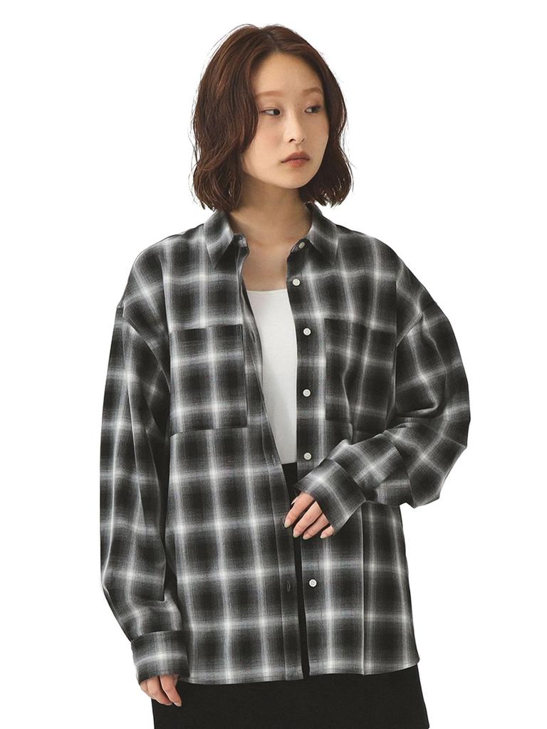 A new shirt featuring an eye-catching oversized ombré check pattern. Unlike typical flannel shirts, this shirt features a beautifully textured surface and a substantial, well-fitting fabric, creating a casual yet sophisticated look.