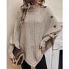 Autumn Winter New Knitted Sweater Women's Clothing, Cable Knit High Neck Button Long Sleeve Top