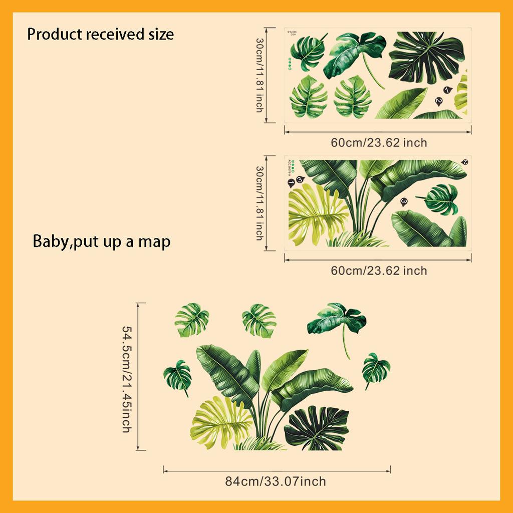 Tropical Green Plant Leaf Butterfly Wall Sticker Self-Adhesive Home Decor for Living Room Bedroom Entrance Decoration