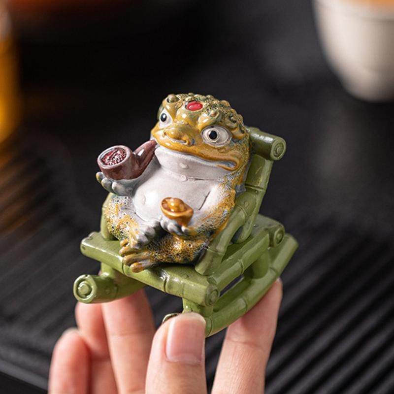 Color Changing Resins Rocking Chair Frogs Teas Pet Sculpture For Meditations Teas Ceremony Gift Decorative Ornament