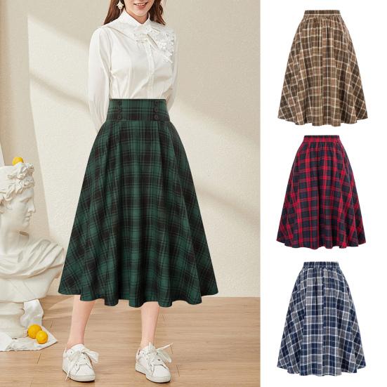 Features: Elastic Waist, Plaid Print, A-Line