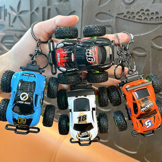 Inspired by off-road racing, it showcases large tires, vibrant racing paint, and a digital logo for a bold, eye-catching look. Equipped with a built-in pull-back function and spring shock absorber, it offers interactive fun as both a stylish pendant and a mini toy.