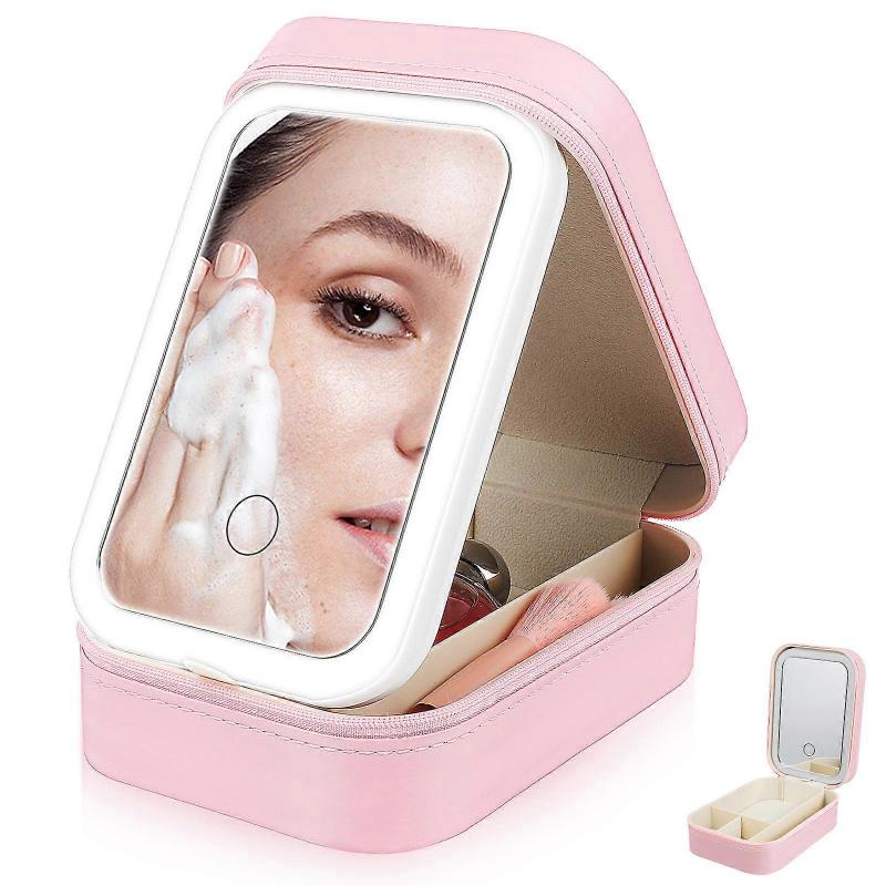 Compact LED Makeup Organizer with Adjustable Brightness – Lightweight Travel Case with Divided Storage for Easy Carrying