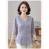 Women's Peach Floral Blouse V-Neck Half-Sleeve Elegant Casual Top