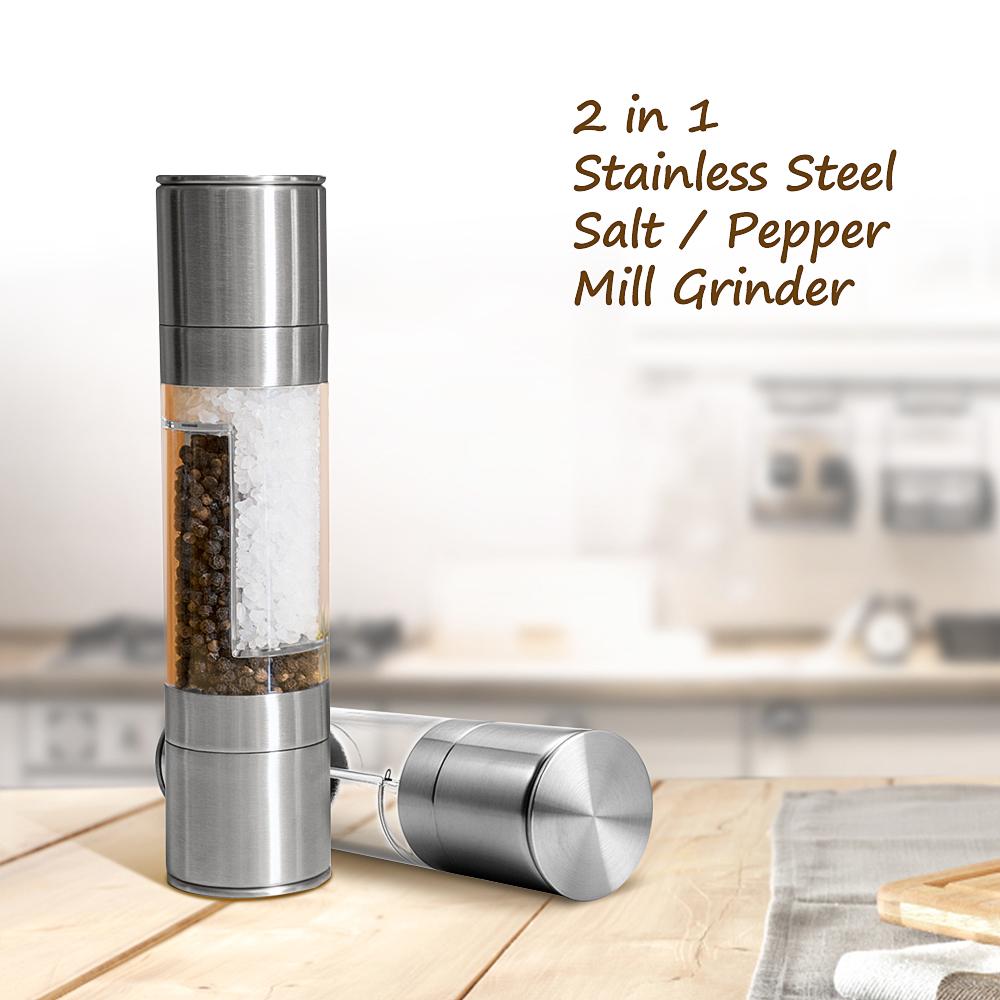 2019 High Quality 2 In 1 Stainless Steel Manual Pepper Salt Spice Mill Grinder Kitchen Seasoning Cooking Tools Support Wholesale