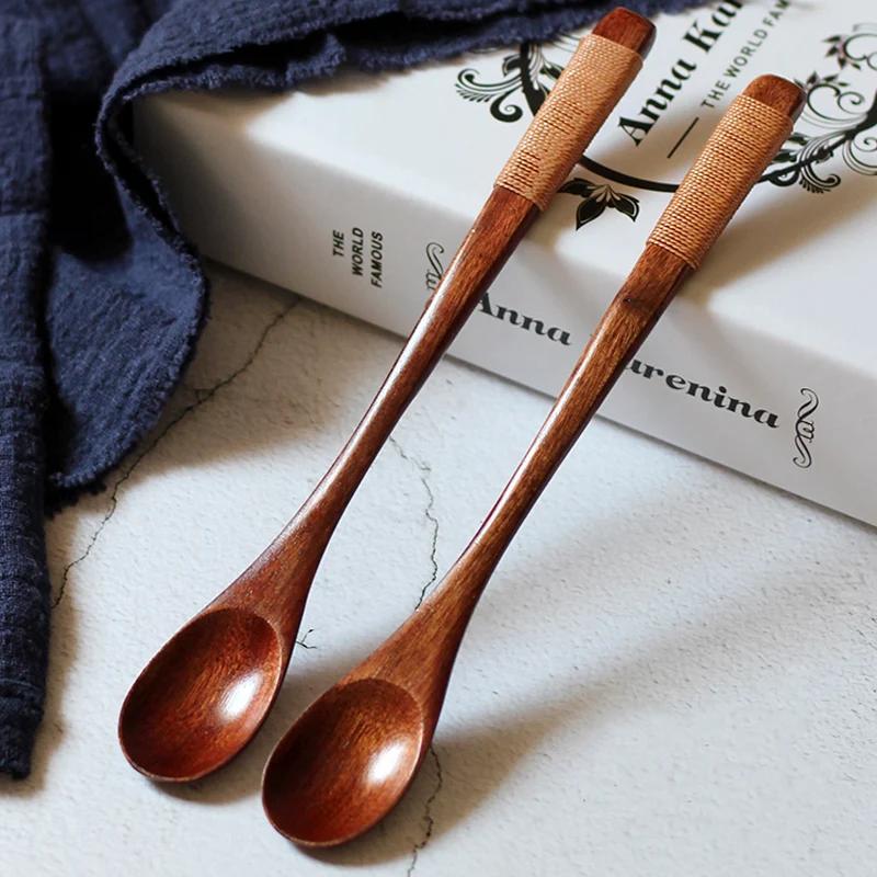 6Pcs Wooden Spoon Long Handled Teaspoon Honey Coffee Tea Spoon Small Wood Stirring Mixing Spoon Set Tea Coffee Stirrer Tableware