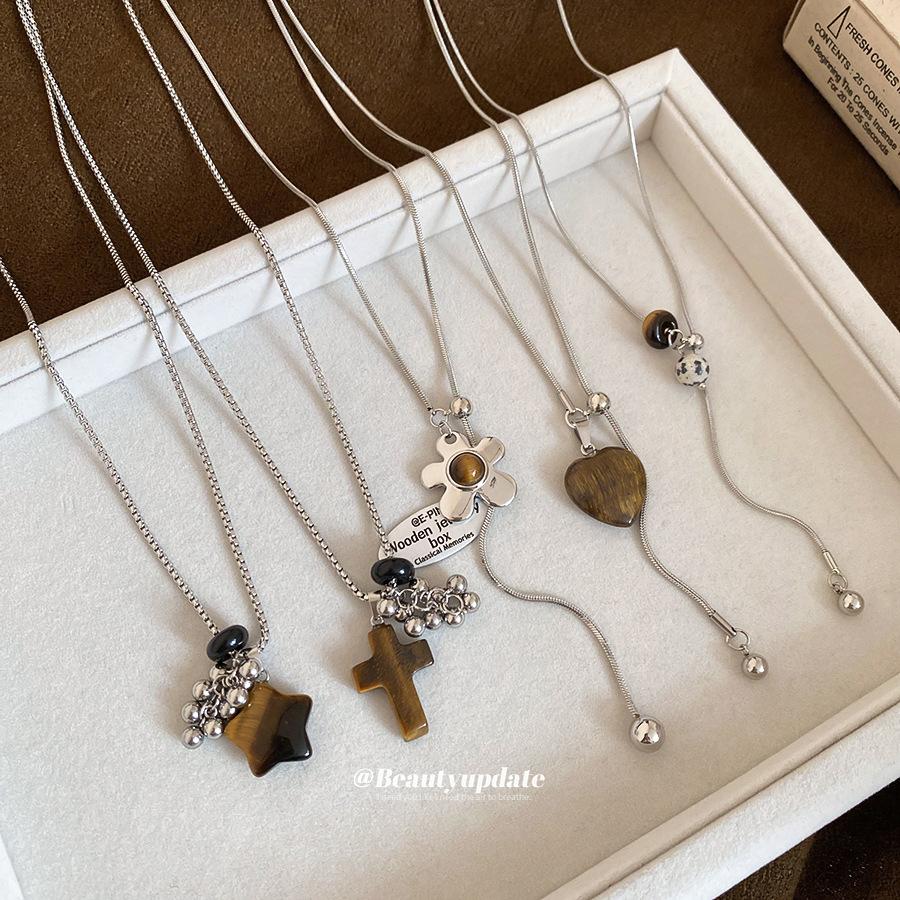 Stainless Steel Tiger's Eye Geometric Pendant Necklace Casual Commuter Versatile Sweater Chain Light Luxury Items