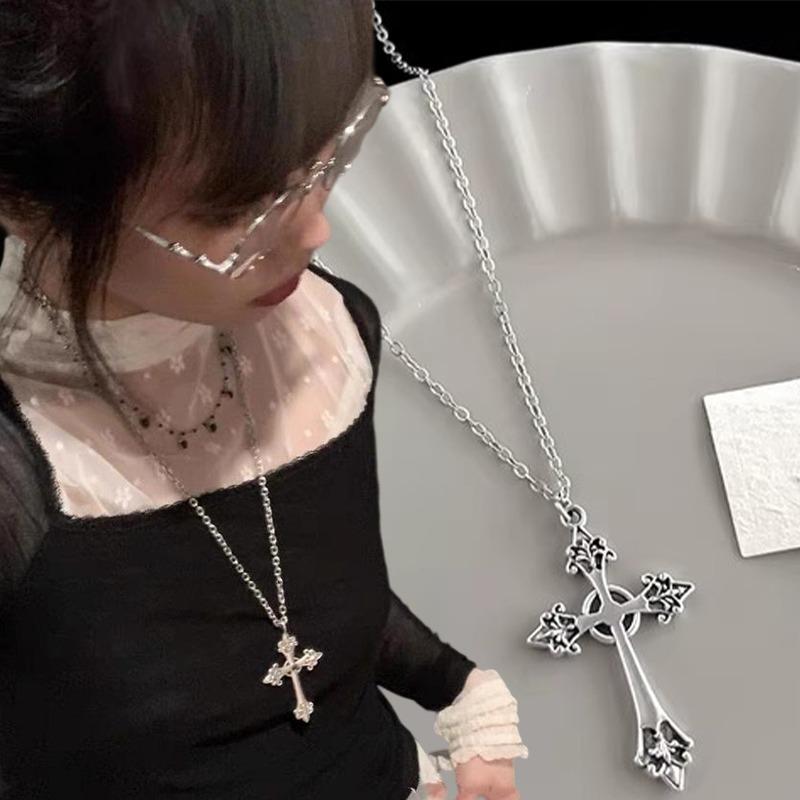 Vintage Cross Pendant Necklace Unisex Retro Punk Jewelry Accessories Gothic Grunge Chain Y2k Choker for Women Men Fashion Gifts
